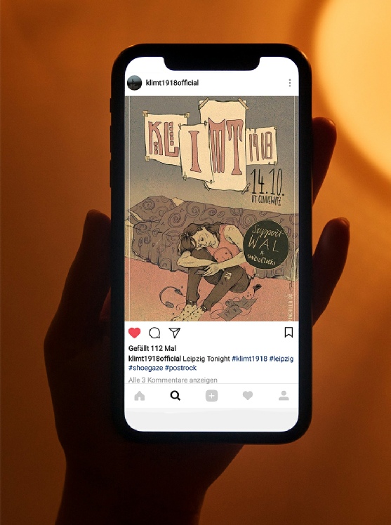 Poster illustration for the concert of Klimt 1918, an italian alternative rock band